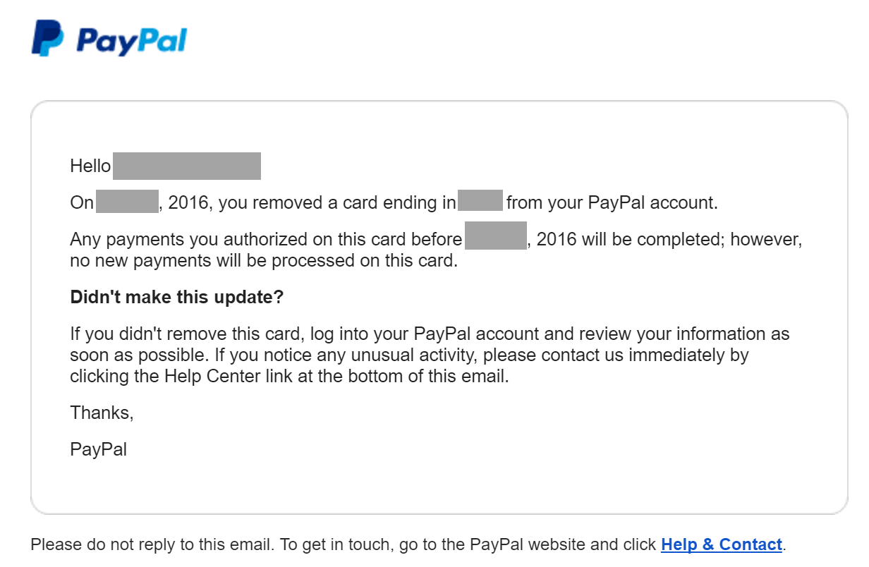 For an arguably better example of a security-conscious email message, take a look at the following email from PayPal:
