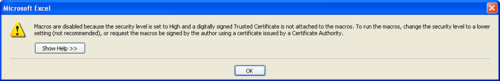 Consider this warning pop-up from Microsoft Excel 2003, which would appear when the user opened a spreadsheet that contained macros, but the macros were disabled.