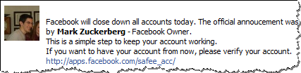 Another illustration of the time limitation igniting the sense of urgency among victims is the scam that directed people to a fraudulent website under the guise that Facebook will be disabling unconfirmed accounts today. (This scam was reported by Graham Cluley.)