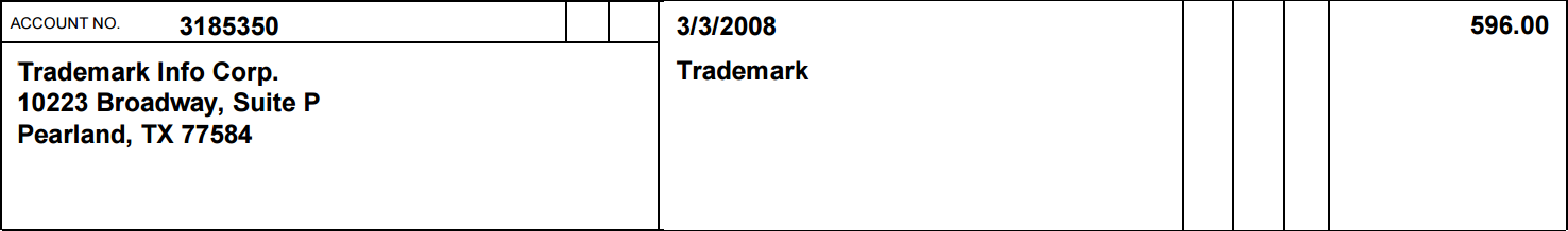 Another example of the recipients treating Trademark Info’s letters as invoices can be seen in the petition that Mineola Water Corporation filed with the US Bankruptcy Court in Alabama. The company listed Trademark Info as a creditor “holding unsecured nonpriority claims” for its Sip of the South trademark in the amount of $596. The claim seems to be dated to 2008.