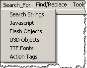 Another way to locate suspicious objects within the PDF file is to use the tool’s “Search For” feature, which can automatically locate JavaScript, Flash objects among other entities: