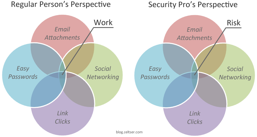 The gist of how regular people differ from security professionals in their perspectives on activities that affect information security: