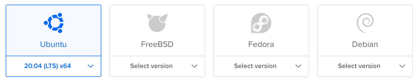 To create a virtual machine for SpiderFoot in a public cloud you can create a “droplet” on DigitalOcean. I used Ubuntu, though you can select another distro if you prefer. Click the dropdown button below the Ubuntu icon on the DigitalOcean “Create Droplets” page, then select an 18.04 x64 option.